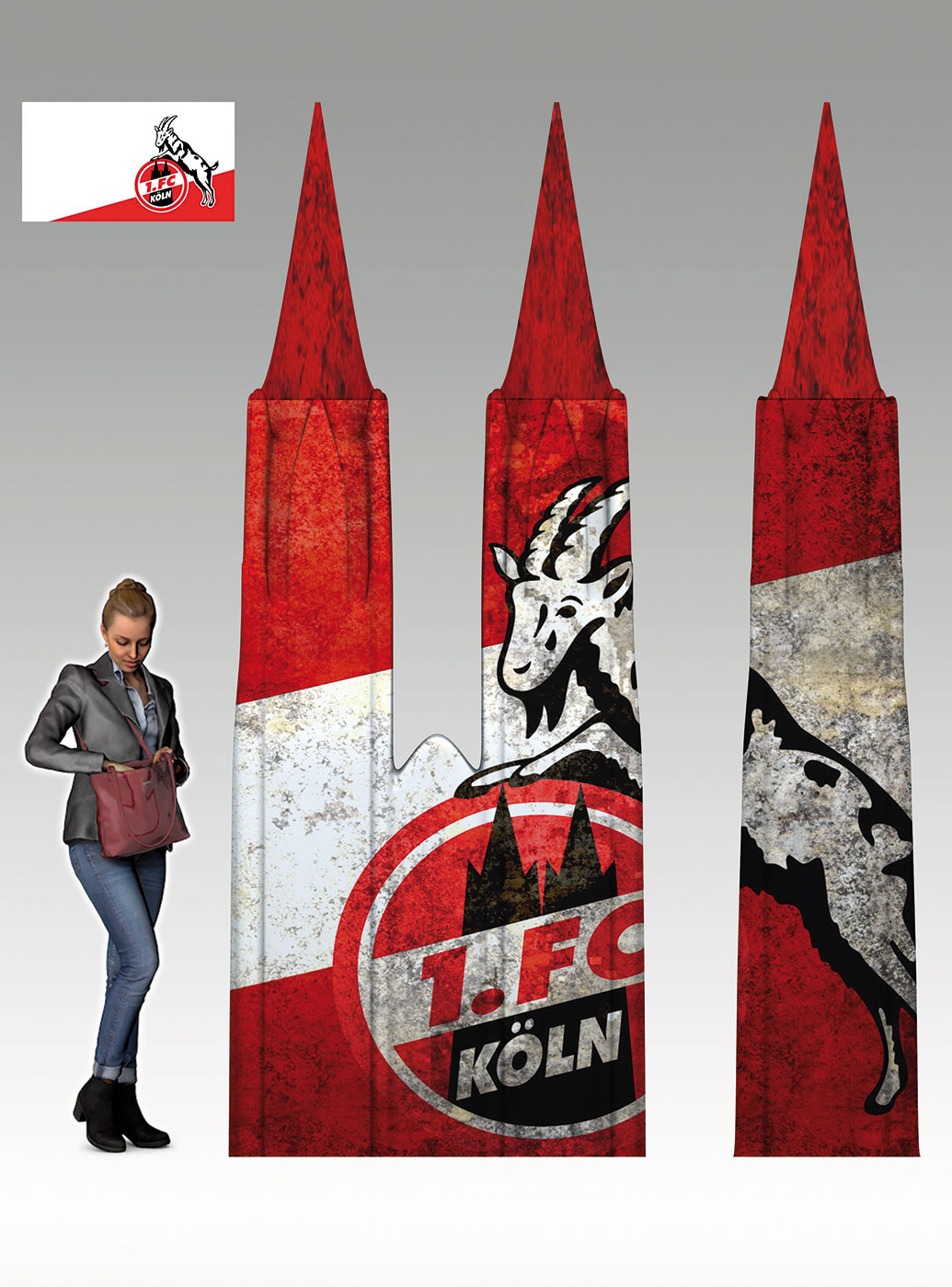 1. FC Köln Der beliebteste Dom in Köln (nach dem Echten ;-)) Mit roter transparenter Lasur lackiert strahlt der Dom in intensivem Rot. Er ist der wohl meist fotografierte Dom aus der Ausstellung am Schokoladenmuseum.