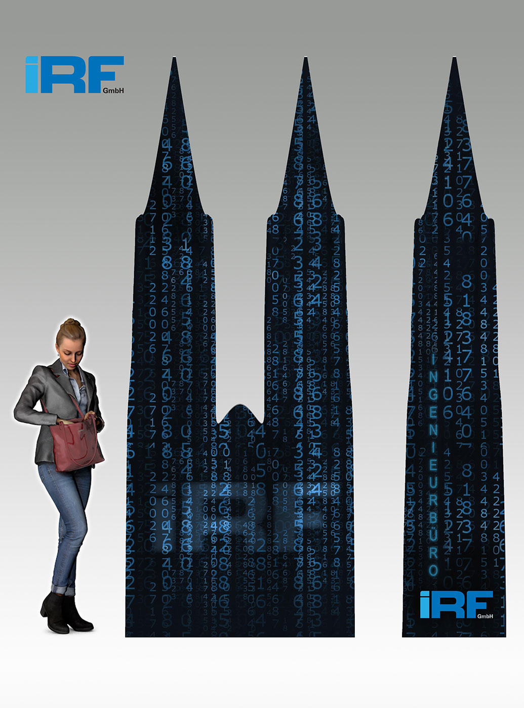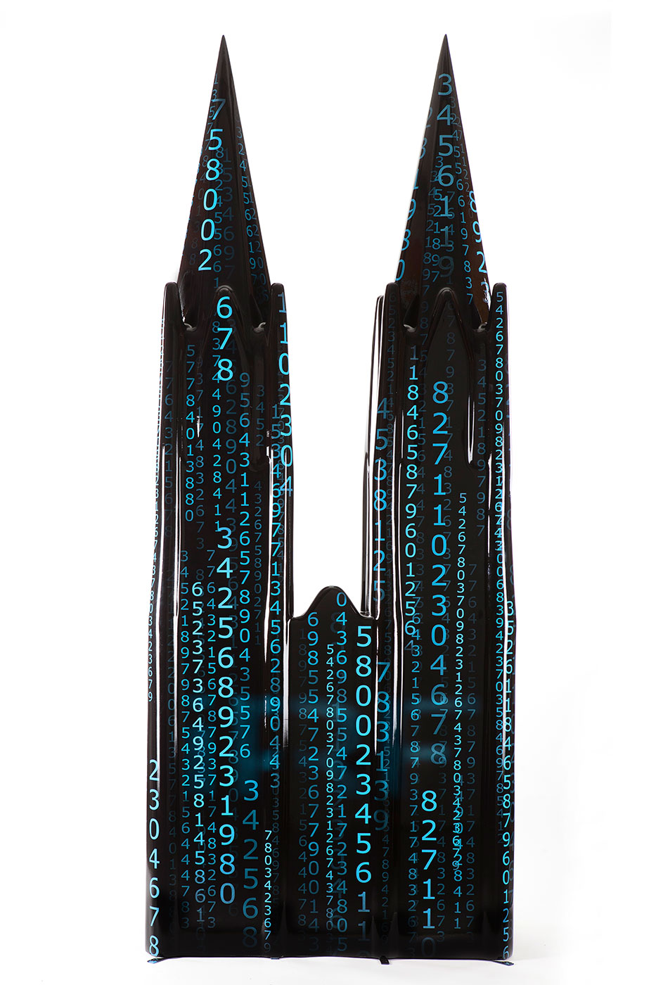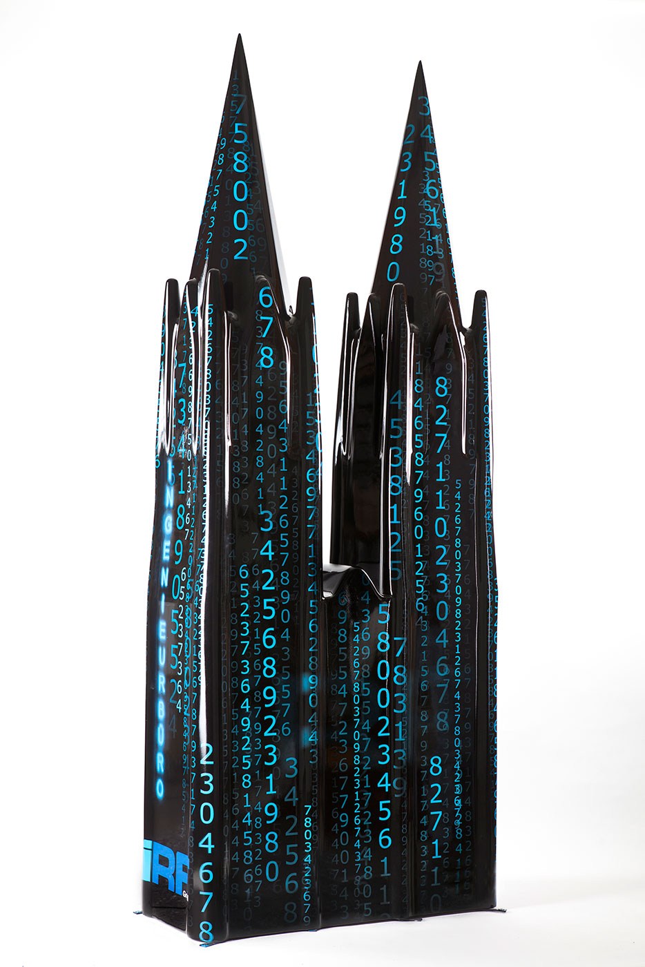In Anlehnung an das Intro des Films wurde dieser Dom in den Hausfarben des Ingeneurbüros in 5 Schichten (nur die Zahlen!) lackiert um die entsprechende Tiefe der Grafik hinzubekommen. Das Thema passt natürlich auch super zum Leistungsspektrum der Firma: Netzwerktechnik.
