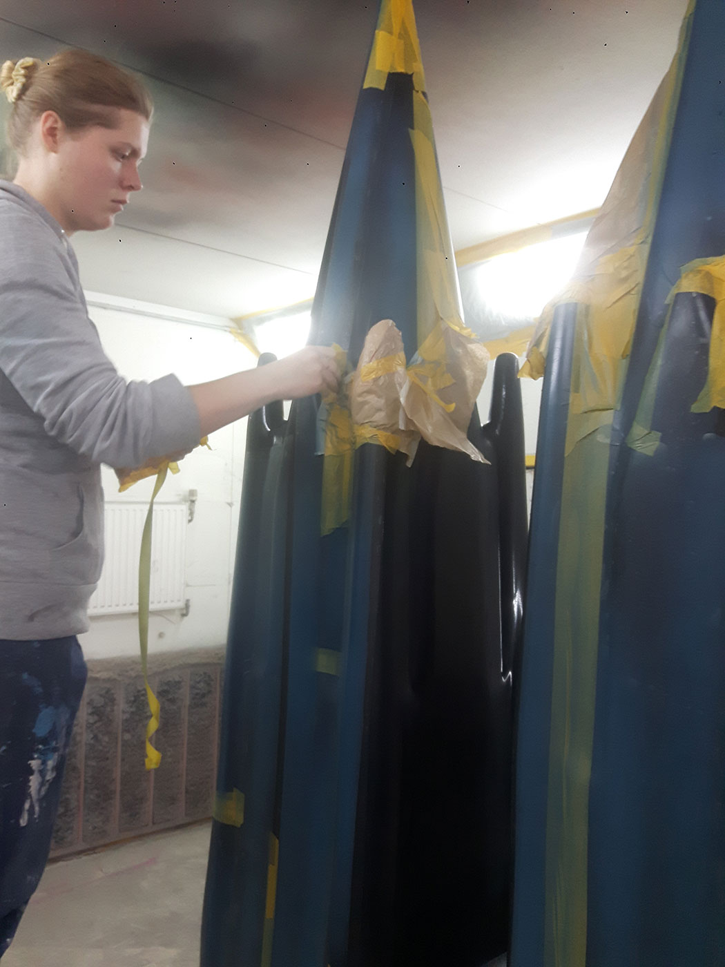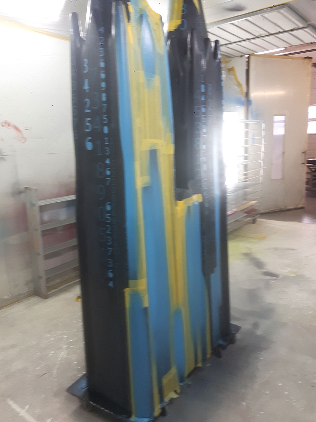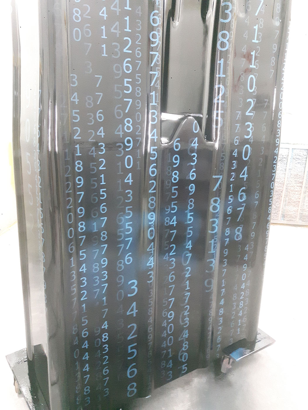 In Anlehnung an das Intro des Films wurde dieser Dom in den Hausfarben des Ingeneurbüros in 5 Schichten (nur die Zahlen!) lackiert um die entsprechende Tiefe der Grafik hinzubekommen. Das Thema passt natürlich auch super zum Leistungsspektrum der Firma: Netzwerktechnik.