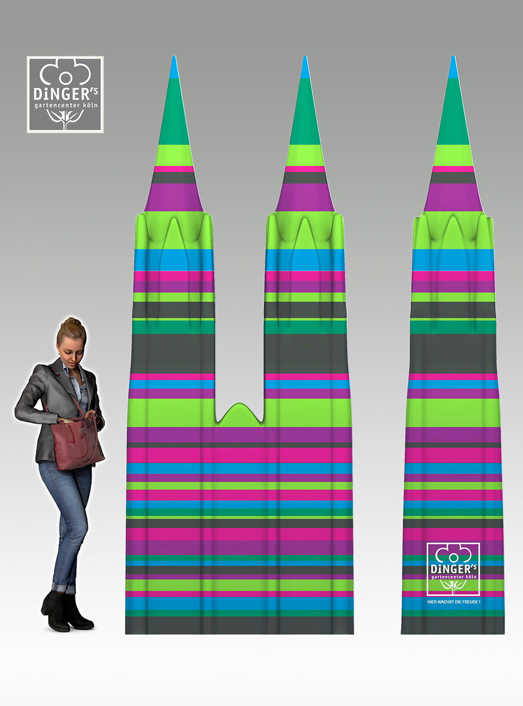 Dingers Vielschichtig Hier wurde mit klaren grafischen Mitteln die Vielschichtigkeit des Unternehmens unter Berücksichtigung der Hausfarben symbolisiert.