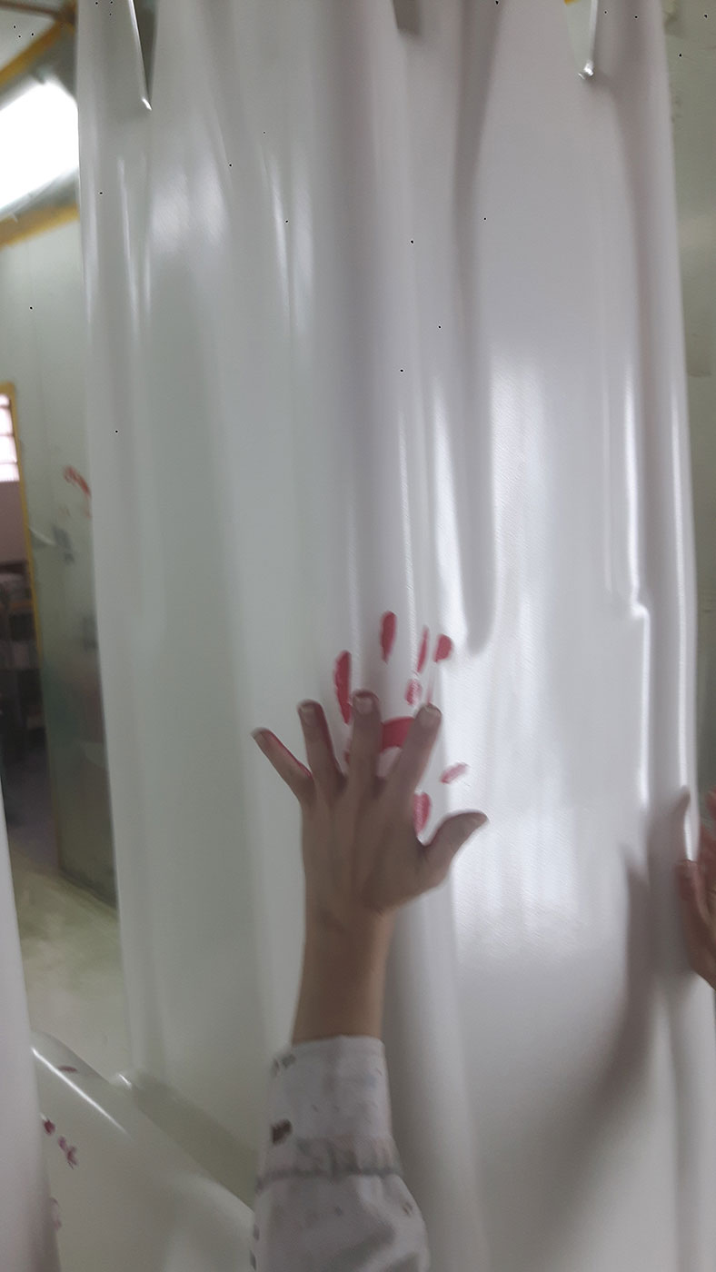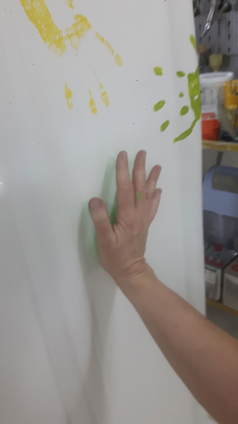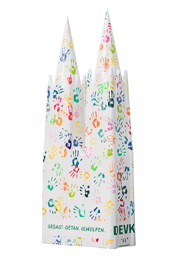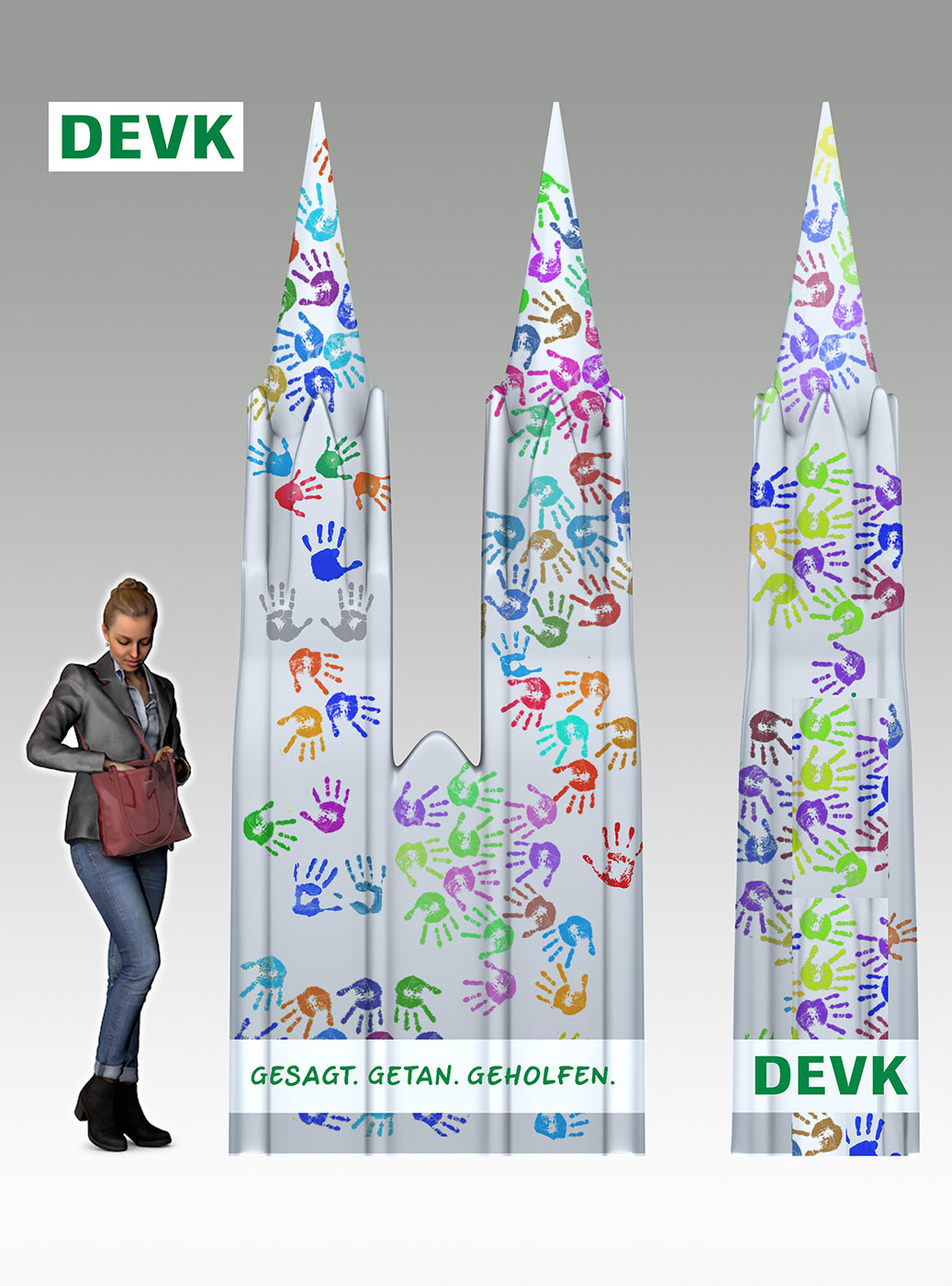 Diese Hände sollen die 6000 Mitarbeiter des Versicherers symbolisieren, die jeden Tag im Dienste der Versicherten einen guten Job machen. Hierfür schickten uns unzählige Mitarbeiter aus allen möglichen Filialen ihre Handabdrücke (mit Wasserfarbe auf Papier gedrückt). Ein tolles Projekt!